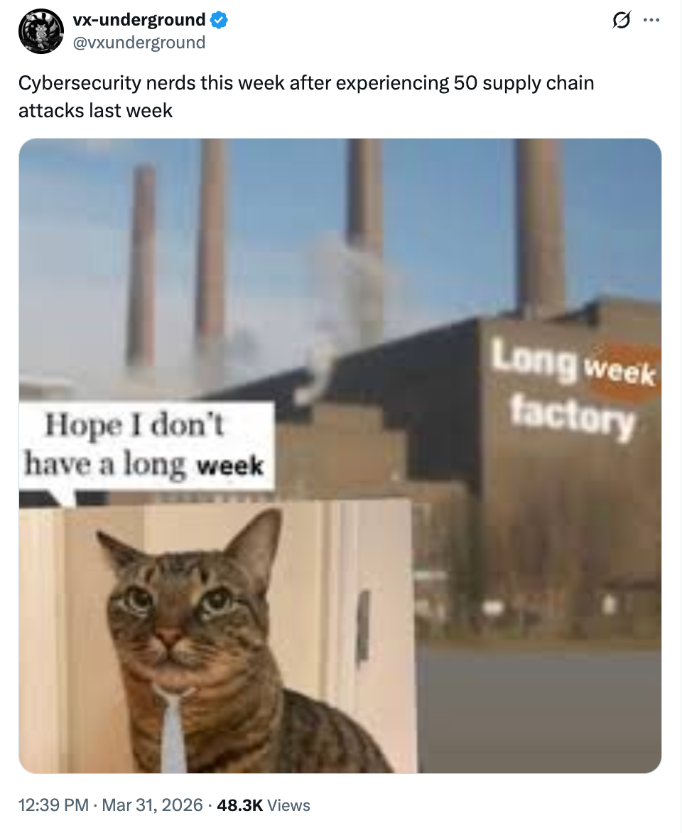Allein im März nutzte TeamPCP innerhalb von weniger als zehn Tagen gestohlene Zugangsdaten für vier große Open-Source-Projekte: Trivy, Checkmarx , LiteLLM und Telnyx. Wenige Tage später wurde Axios, der JavaScript-HTTP-Client mit über 100 Millionen Downloads pro Woche, durch einen gehackten Kontozugang eines Betreuers kompromittiert. Diese Woche gab Vercel bekannt, dass ein Angreifer auf interne Systeme und Umgebungsvariablen zugegriffen hatte, nachdem er vermutlich eine von einem seiner Mitarbeiter genutzte Chrome-Erweiterung kompromittiert hatte.