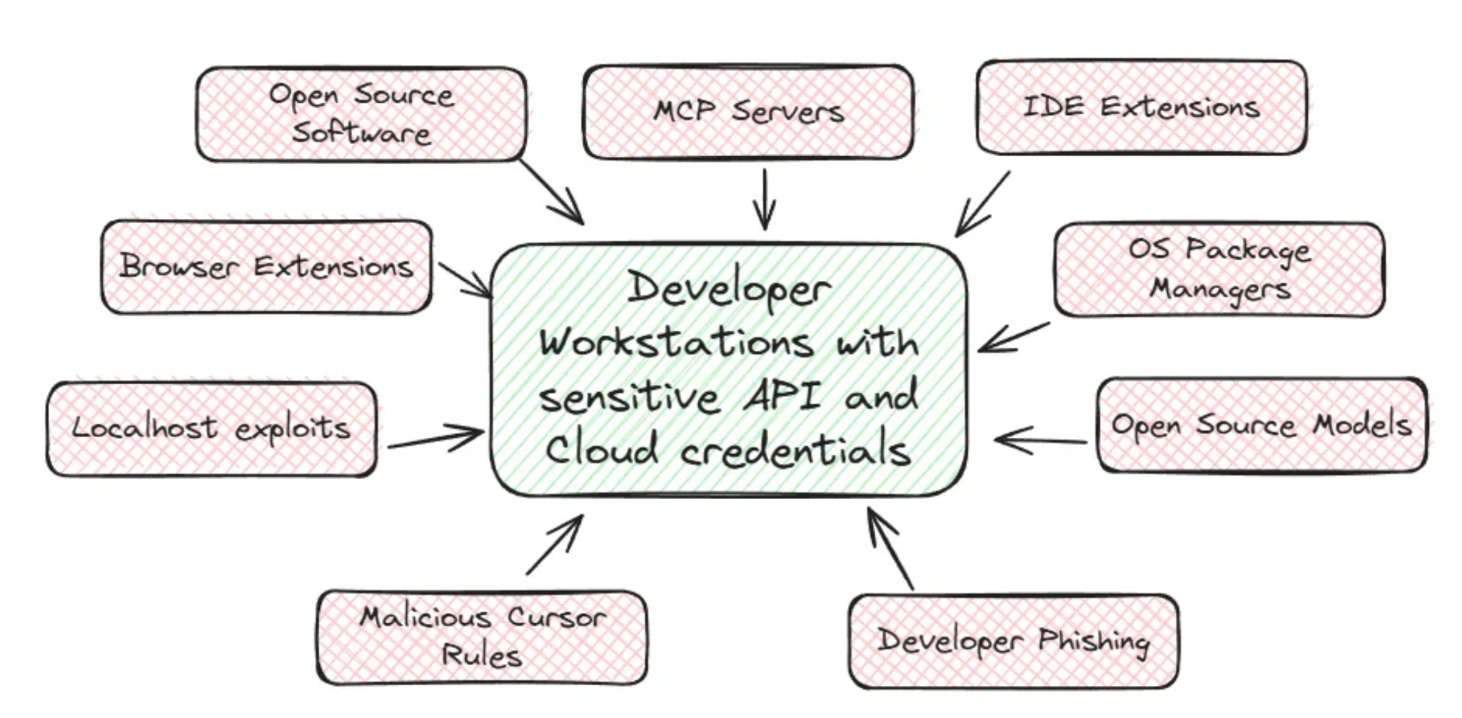 Entwickelnde sind vertrauenswürdige Umgebungen, die den Schlüssel zum Schloss in sich tragen: Cloud-Anmeldedaten, SSH-Schlüssel, npm-Publish-Token, Kubernetes-Konfigurationen, direkten Zugriff auf den Quellcode und die Produktionsumgebung. Wird nur eines davon kompromittiert, sind die Folgen enorm. Schon ein einziges kompromittiertes Passwort reichte aus, um bösartige Versionen legitimer Pakete zu veröffentlichen, was zu Sicherheitsverletzungen in Tausenden von Unternehmen führte.