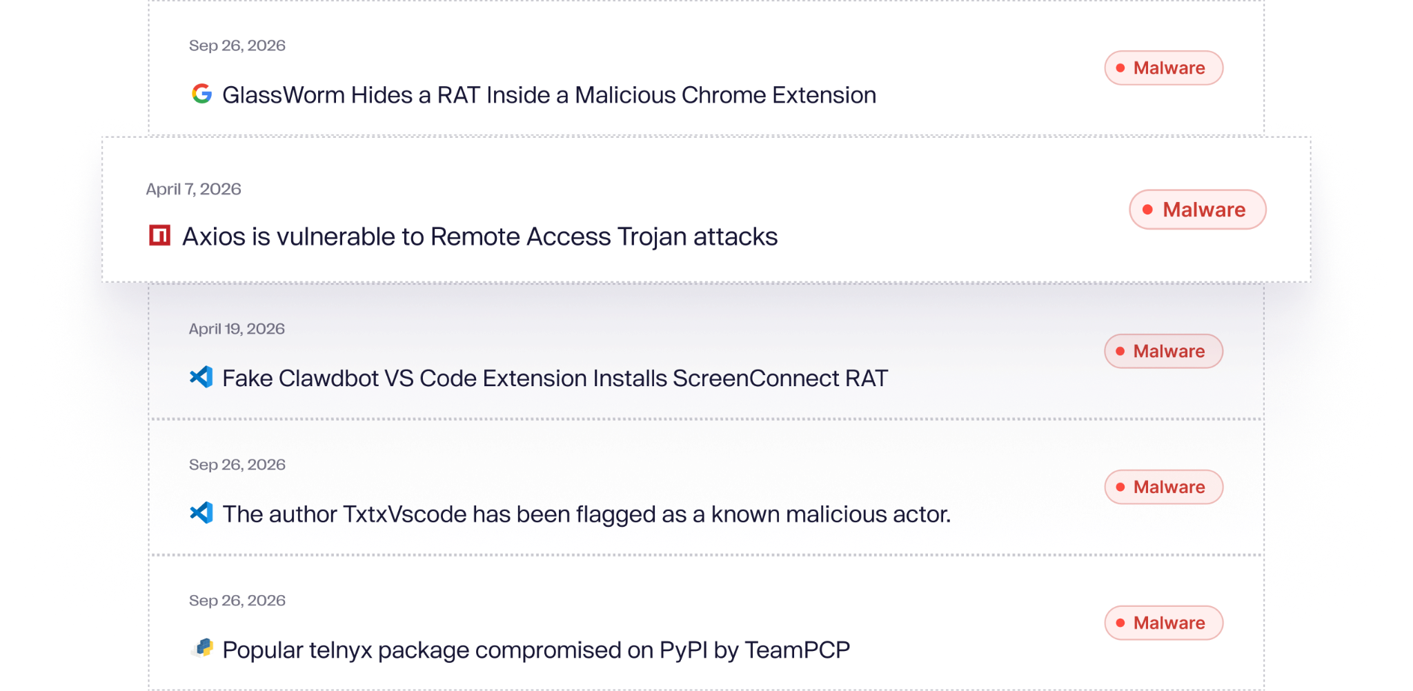 Aikido wird von einem engagierten Team aus Sicherheitsforschern und KI-Ingenieuren unterstützt. Wir veröffentlichen alle Erkenntnisse zu Bedrohungen automatisch, sodass Aikido Ihre früheste Warnung vor Bedrohungen in der Lieferkette darstellt. Kostenlos. Offen. → https://intel.aikido.dev/